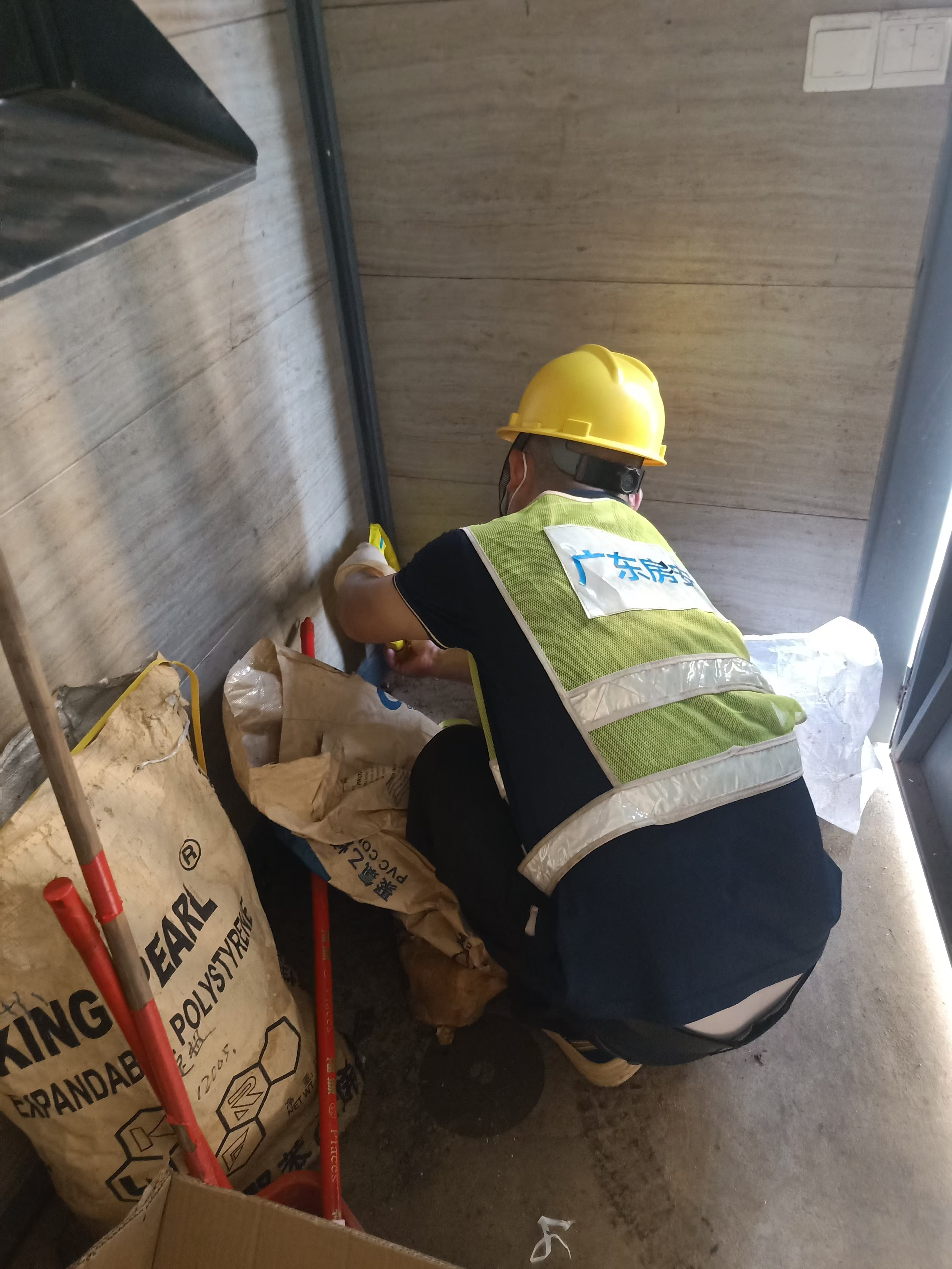 1、開工前對所有可能與木料接觸的墻體部位進行噴藥(具體指窗套、門套、墻裙、堤角線、各類柜子與墻接觸的墻面);墻體無木料部位噴1米以下!